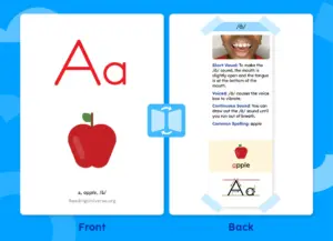 To use your flashcards to their fullest potential, refer to the Guide to Teaching Letters and Sounds (opens in new window). It provides the characteristics for each sound, including how to make the sound, keywords, and letter formation—perfect for copying onto the back of your cards.