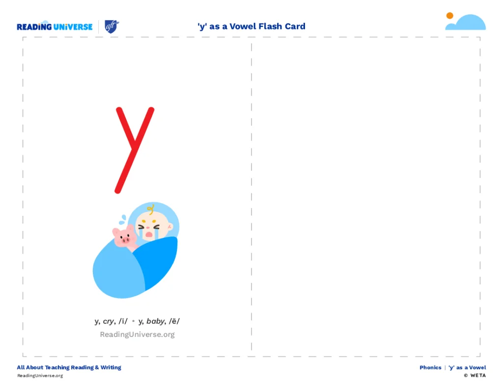'Y' as a Vowel Flash Card