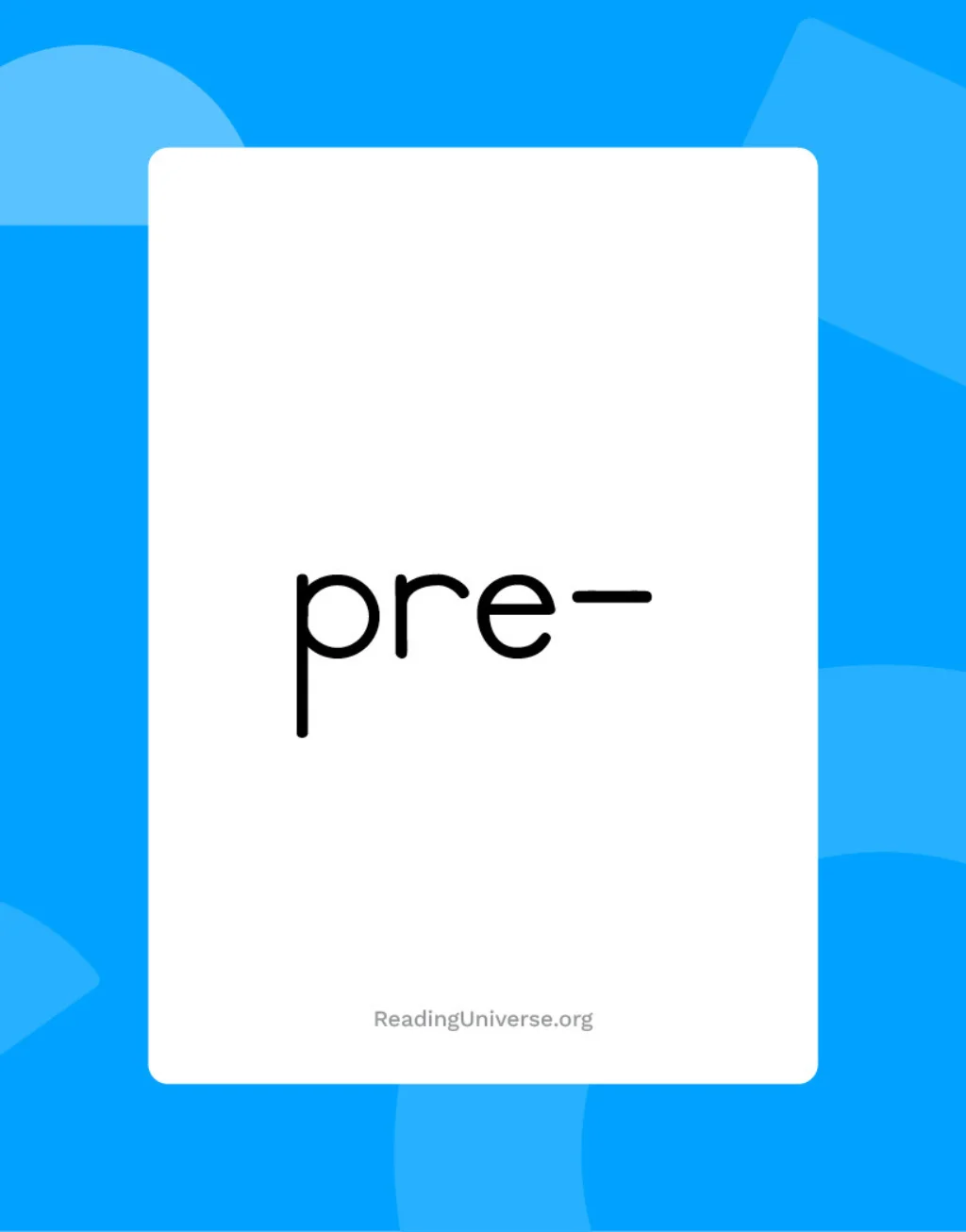 Watch and listen to what we will say when we see this card. The prefix 'pre-' means "before" or "in advance."