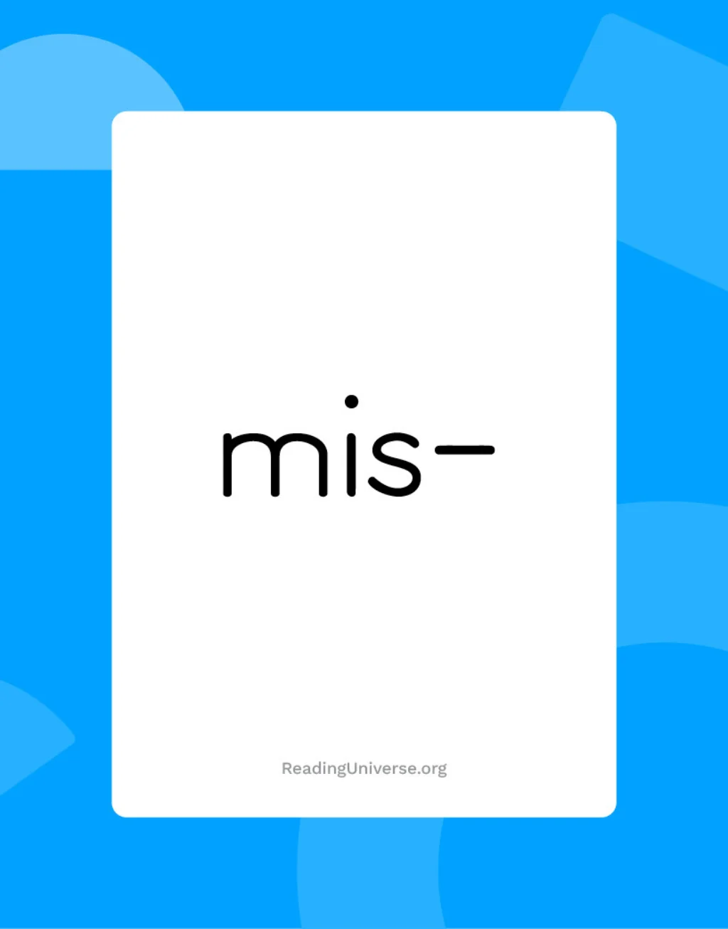 The prefix 'mis-' is a morpheme that means "bad" or "wrong." We usually add 'mis-' to a base word that's a verb: